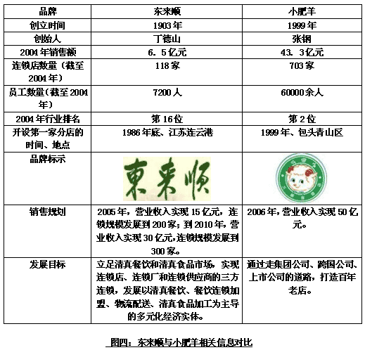 兩個(gè)創(chuàng)辦時(shí)間差距跨越近百年的品牌,今天都無可避免的站在了整個(gè)全球餐飲企業(yè)同臺(tái)競爭的大舞臺(tái)上,是在傳承中創(chuàng)新?抑或是在創(chuàng)新中傳承?如果簡單的用營業(yè)收入進(jìn)行比較和判斷,2004年?duì)I業(yè)收入6.5億元的東來順擺在43.3億元的小肥羊面前,似乎應(yīng)該受到更多指責(zé)與貶低。但如果我們能夠在多加一個(gè)思考的緯度,放到品牌的歷史發(fā)展中、放到百年品牌經(jīng)營轉(zhuǎn)型的重重困難中,他們的許多做法與思考方式都是十分有意義的。東來順與小肥羊雖然看似非正面沖突的商戰(zhàn),卻演繹了一個(gè)值得許多百年品牌與全新品牌學(xué)習(xí)與思考的發(fā)展軌跡……
