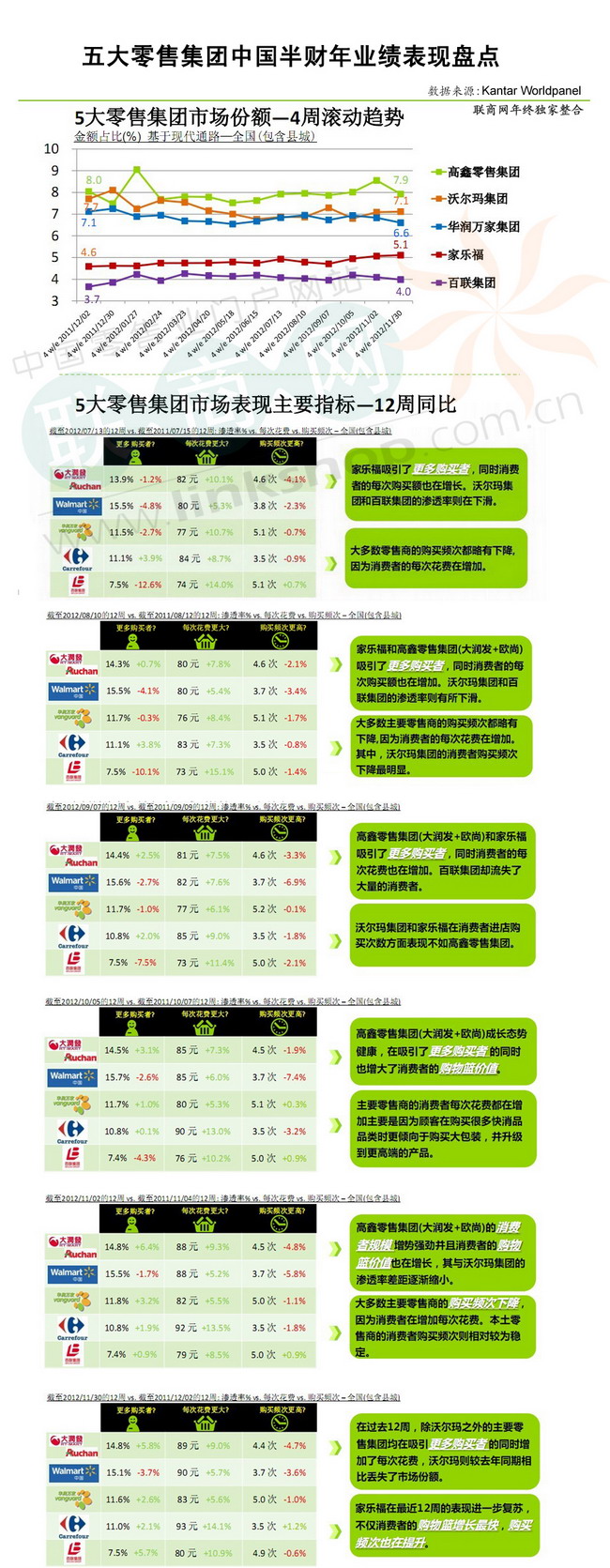 關(guān)鍵是家樂福模式在日本、韓國市場不能像中國市場一樣收取“進(jìn)場費(fèi)”,這一大利潤來源被切斷。目前在中國市場,家樂福向供應(yīng)商收取的“進(jìn)場費(fèi)”對(duì)其利潤的貢獻(xiàn)率達(dá)到了50%以上,其盈利模式并不倚重商品的進(jìn)銷差價(jià)。這主要取決于相對(duì)中國上千家規(guī)模不大的供應(yīng)商,家樂福在談判中顯然處于強(qiáng)勢地位。