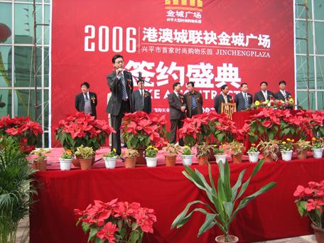 2006年4月22號(hào)下午,興平市金城路中段金城廣場項(xiàng)目售樓中心門前鑼鼓喧天,熱鬧異常,陜西森海實(shí)業(yè)有限公司金城廣場項(xiàng)目與香港環(huán)球商機(jī)集團(tuán)有限公司港澳城簽約儀式正在隆重舉行,簽約儀式由興平市招商局局長主持,市委常委,市政府常務(wù)副市長杜潤民等發(fā)表了重要講話,陜西森海實(shí)業(yè)投資有限公司總經(jīng)理范陽軍與香港環(huán)球商機(jī)董事長葉智輝就港澳城品牌進(jìn)駐金城廣場項(xiàng)目進(jìn)行了現(xiàn)場簽約。