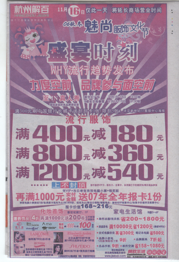 杭州銀泰、百大、解百、杭州大廈促銷海報(bào)欣賞