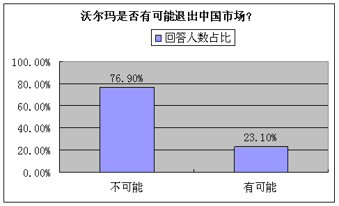 ●近77%的人認為沃爾瑪不可能退出中國市場;