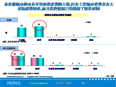 AC尼爾森于1984年來到中國,目前在中國已與超過160家跨國和本土零售商建立了合作關(guān)系。AC尼爾森通過搜集各類型零售門店的銷售數(shù)據(jù)整合成為有效的市場報(bào)告,集中體現(xiàn)零售業(yè)態(tài)的發(fā)展態(tài)勢和市場機(jī)遇,幫助零售業(yè)制定有效的市場戰(zhàn)略和策略。