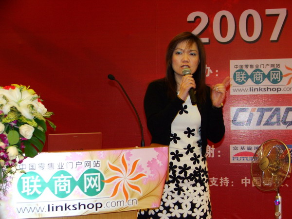 (圖為美蘭女士在講述她的M型社會之零售營銷學(xué),真正的臺灣風(fēng)格。)