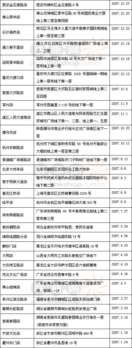 (注:其中橘紅色字體部分為2007年新開門店)