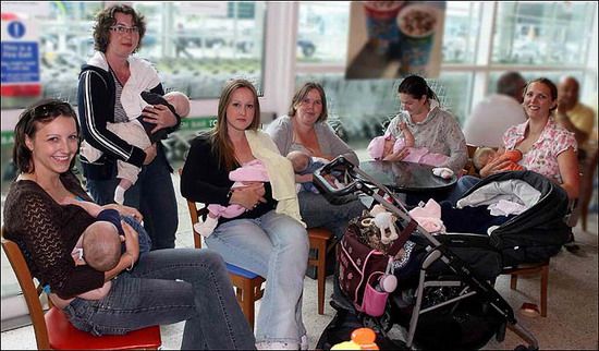 日前,英國(guó)一名年輕媽媽在麥當(dāng)勞給孩子喂奶時(shí)遭遇“逐客令”,雖然她當(dāng)時(shí)未予理會(huì)、繼續(xù)哺乳,但回家后卻越想越窩火。于是她帶了6個(gè)女伴又“殺”回了麥當(dāng)勞,一起坐在里面集體給孩子喂奶以示抗議。麥當(dāng)勞為此向她道歉。