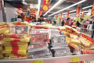 海淀工商分局四季青工商所執(zhí)法人員對(duì)歐尚超市進(jìn)行檢查發(fā)現(xiàn),在超市家居用品區(qū)貨架上擺放著不少祭奠用的冥幣、黃紙和元寶。超市負(fù)責(zé)人說(shuō),這是超市3月21日從上海逸淵辦公用品有限公司購(gòu)進(jìn)的殯葬用品,銷(xiāo)售情況還不錯(cuò)。