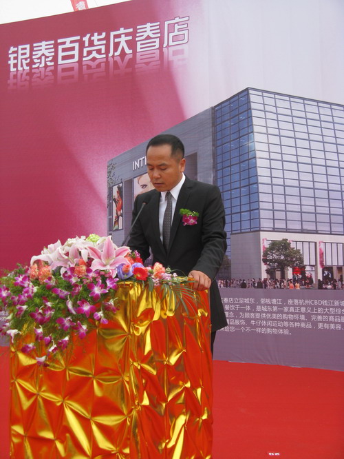 杭州市市委書記王國(guó)平和中國(guó)銀泰投資有限公司董事長(zhǎng)沈國(guó)軍現(xiàn)身開業(yè)儀式,銀泰百貨(集團(tuán))首席執(zhí)行官陳曉東、銀泰集團(tuán)副總裁王崗與慶春店負(fù)責(zé)人劉索萍也在嘉賓席。