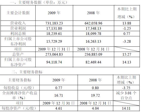 重慶百貨周一晚間發(fā)布業(yè)績快報(bào),稱公司09年歸屬于上市股東的凈利潤為1.57億元,較08年同期減少3.28%。每股收益0.77元,較08年同期下降3.75%。