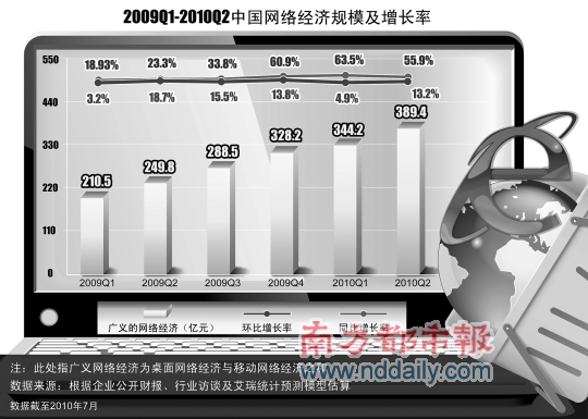 2009Q 1-2010Q 2中國網(wǎng)絡(luò)經(jīng)濟(jì)規(guī)模及增長率