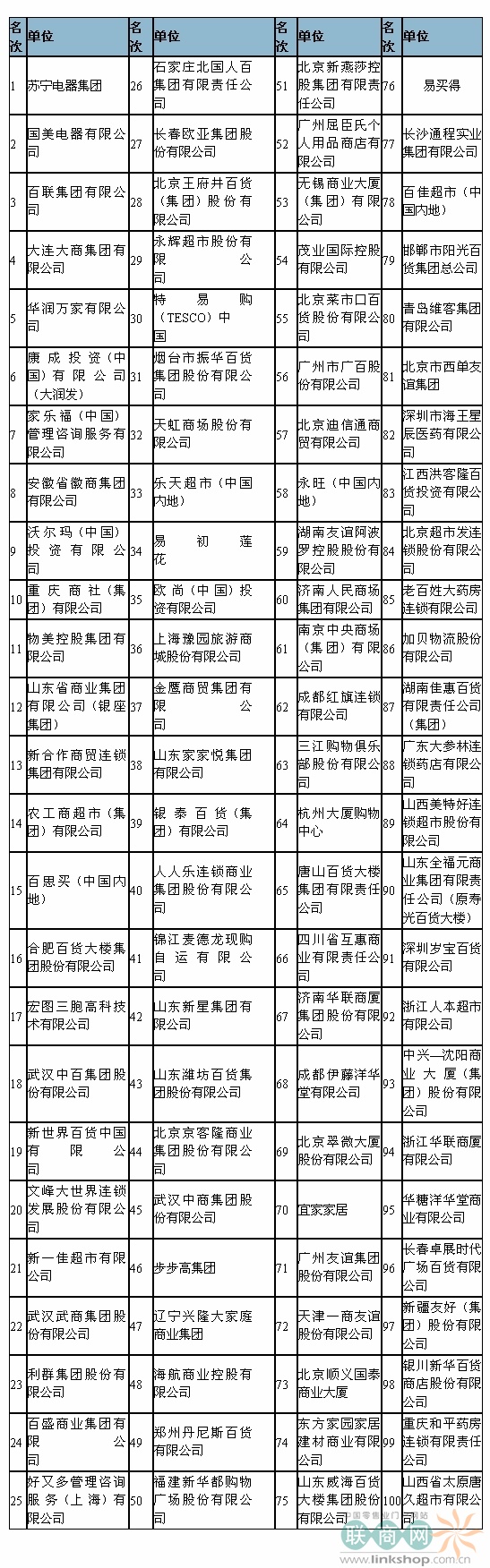 2010年中國(guó)零售百?gòu)?qiáng)公布 蘇寧領(lǐng)跑