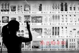 上海地鐵站內(nèi),一用戶正在操作手機(jī),對著“無限1號店”的虛擬超市下單購物。