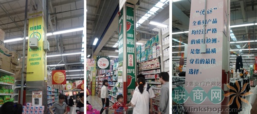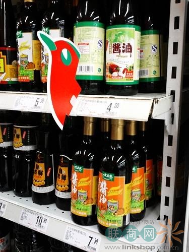 在超市類,對于自有品牌的宣傳無處不見。以下為超市類的商品導購標識: