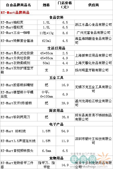 “RT-MART”自有商品的品牌明細(xì)表: