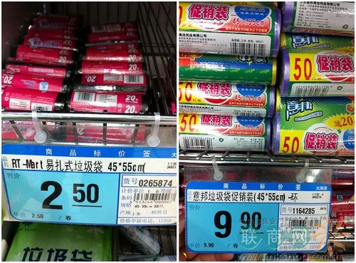 分析:45*55規(guī)格垃圾袋,“RT-Mart”與“易邦”差價(jià)竟有7.4。