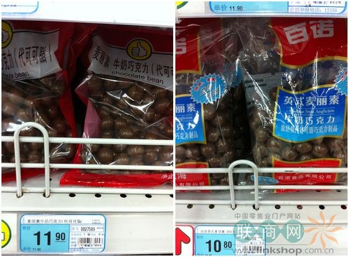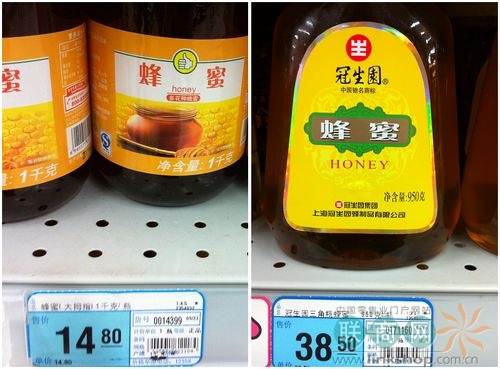 分析:1KG“大拇指”蜂蜜與950G冠生園相比較而言,規(guī)格上“大拇指”多50G,價(jià)格上冠生園反而高出23.7,是產(chǎn)品對(duì)照組差價(jià)比較明顯的一組。