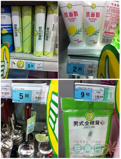 目前大潤(rùn)發(fā)自營(yíng)商品以訴求市場(chǎng)最低價(jià)的“大拇指”為主,品項(xiàng)有近2,000種,比領(lǐng)導(dǎo)品牌便宜六成,若和賣場(chǎng)內(nèi)同等級(jí)最低價(jià)產(chǎn)品相較,也便宜一成。至于新推出的大潤(rùn)發(fā)商品則不打最低價(jià),而是鎖定與領(lǐng)導(dǎo)品牌競(jìng)爭(zhēng)質(zhì)量,但比領(lǐng)導(dǎo)品牌便宜15%以上。