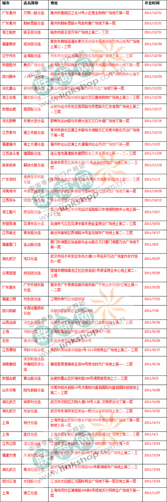 沃爾瑪2011年在華門店盤點(獨家)