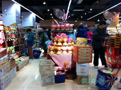 重新開業(yè)的世紀(jì)聯(lián)華city life生活超市是世紀(jì)聯(lián)華旗下的高端精品超市,其空間設(shè)計(jì)是由日本設(shè)計(jì)團(tuán)隊(duì)完成的。櫻花、日本娃娃、壽司、招財(cái)貓……超市內(nèi)部擺設(shè)也體現(xiàn)出日本文化中的精致元素。