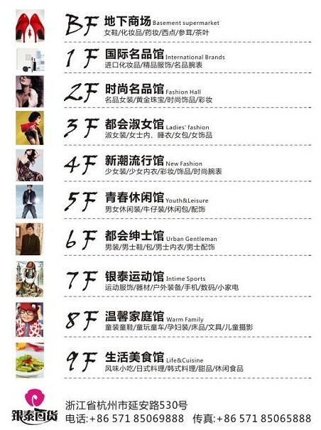 以下為銀泰杭州武林店地下一樓至地上八樓服飾類(lèi)品牌列表: