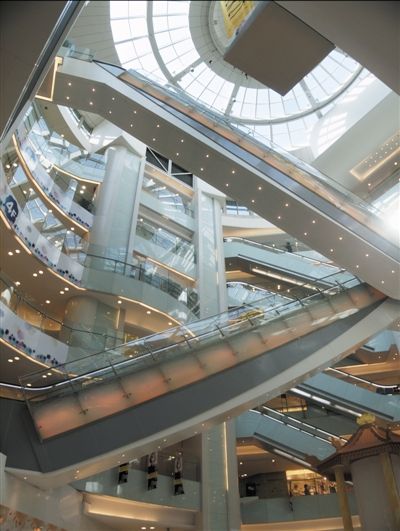 商場(chǎng)里直達(dá)頂層的扶梯,目前以大悅城的飛天梯最為典型。朝陽(yáng)大悅城設(shè)置了兩部飛天梯,“一飛五”和“五飛八”。顧客上得方便,但下沒(méi)有落地梯。除了坐直梯,顧客上去后,只能一層一層下來(lái),停留在購(gòu)物中心的時(shí)間會(huì)相對(duì)較長(zhǎng)。