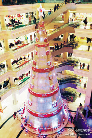巨型圣誕樹亮相石家莊一商場 有8層樓高