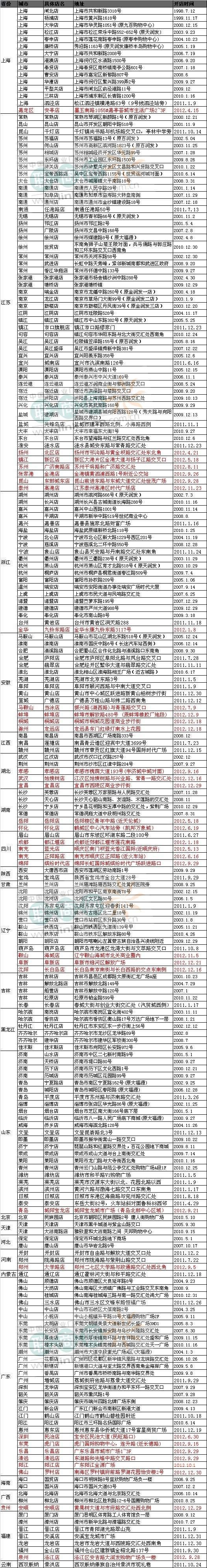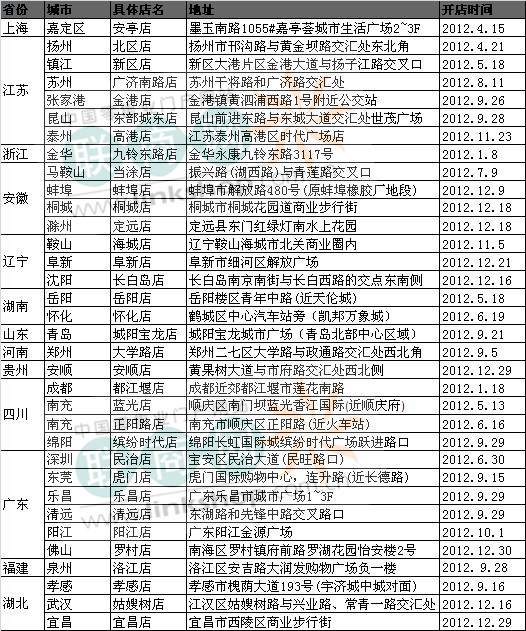大潤發(fā)2012年在華新開門店具體分布(34家)
