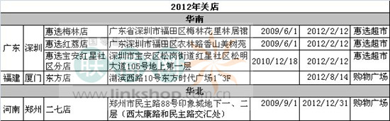二、沃爾瑪2012年在華關(guān)閉的門店(5家)