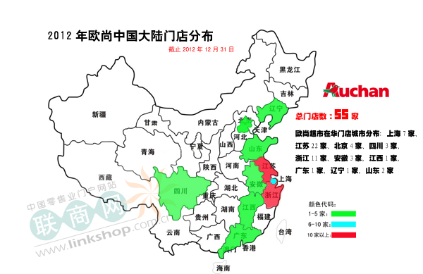 2012年歐尚在華門店分布圖