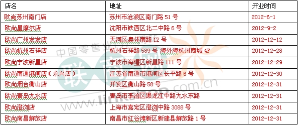 歐尚2012年在華新開10家店 總數(shù)達55家