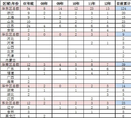 表一:大潤(rùn)發(fā)在大陸市場(chǎng)門店布局(數(shù)據(jù)來(lái)源:聯(lián)商網(wǎng))