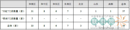 不同品牌門店地區(qū)分布情況: