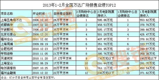 影院票房收入排行方面,上海五角場萬達分別553.62萬元、595.86萬元領(lǐng)跑排行榜,12座萬達廣場中,1月影院票房收入超過500萬元的僅有五角場,2月過500萬元的除了五角場,還有寧波鄞州、北京石景山。