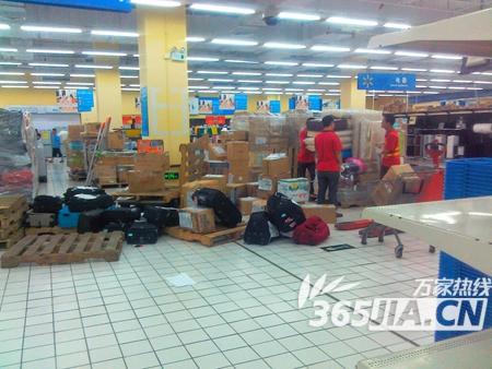 在沃爾瑪超市二樓,可以看到一些超市的工作人員正在對(duì)電器類產(chǎn)品“打包”,附近放了20多個(gè)已經(jīng)裝好的紙箱。