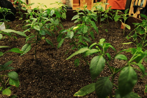 在商場(chǎng)的南廳花園區(qū),除了幸福樹(shù)、火炬鳳梨 、豹紋竹芋、鵝掌柴、紅掌、百合、發(fā)財(cái)樹(shù)、龍血樹(shù)、橡皮樹(shù)等固有植物外,商場(chǎng)每周還會(huì)推出一個(gè)花種的專(zhuān)場(chǎng)展示,至今已開(kāi)展了荷花、綠掌、百合等主題展示。這個(gè)暑期商場(chǎng)一樓北廳也增加了一座迷你“都市農(nóng)場(chǎng)”,四噸的泥土和四立方的無(wú)土栽培基質(zhì)里栽下了蘆薈、莧菜、紫背天葵、五彩椒、苦苣、向日葵等綠植,向日葵抽出了鮮嫩的綠葉,五彩椒結(jié)出了嫩綠的果實(shí)。除了新鮮有趣的各式植物,銀泰百貨的“都市農(nóng)場(chǎng)”還有幾只重要“明星級(jí)”嘉賓——可愛(ài)迷你的“小香豬”,它們?cè)阡仢M稻草的“新家”里自在享受,來(lái)往商場(chǎng)的客人無(wú)不駐足在農(nóng)場(chǎng)旁,紛紛為這片創(chuàng)意農(nóng)場(chǎng)里動(dòng)靜結(jié)合的趣味景象留念。