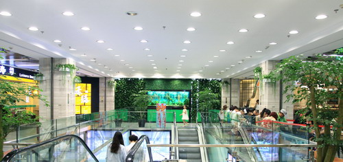 聯(lián)商網(wǎng)消息:盛夏的熱浪已經(jīng)襲來(lái),溫州銀泰百貨這座“花園百貨”依舊處處洋溢著綠色的夏日清涼。熱帶魚(yú)、小香豬、蔬菜、瓜果、綠植,各種生物在商場(chǎng)的清涼環(huán)境中呈現(xiàn)出一片在都市中難得的盎然生機(jī)。