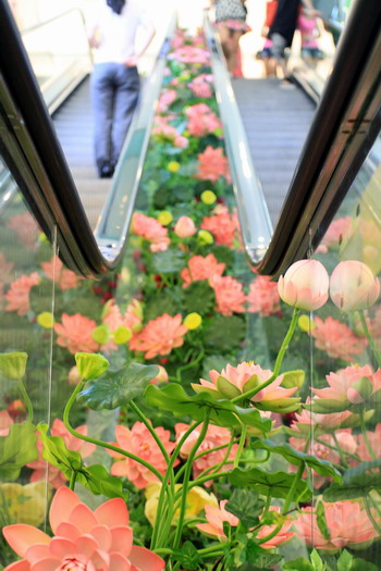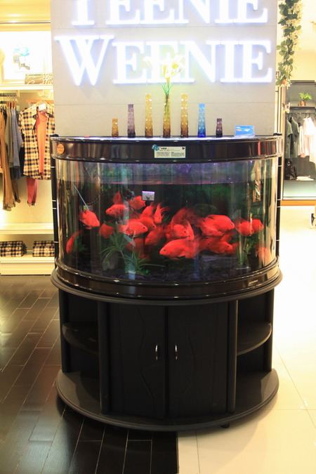 幾千條熱帶魚(yú)和近百條小魚(yú)悄然游進(jìn)溫州銀泰,在商場(chǎng)的電梯口、六樓、八樓均設(shè)點(diǎn)布置。吸引了不少小朋友駐足觀賞。在六樓與八樓展示的熱帶魚(yú)種類(lèi)主要有錦鯉、孔雀魚(yú)、血鸚鵡、銀龍魚(yú)、半身黑、黑蝴蝶、裸頂脂鯉等,工作人員也會(huì)定期更換魚(yú)種。而在扶梯中間則是小魚(yú)和花藝的小景布置形式出現(xiàn),小而精致,在乘坐扶梯的過(guò)程中也處處是風(fēng)景。