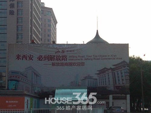 2008年底,解放路開始改造,時(shí)至今日,5年過去,但是解放路周邊改造仍在進(jìn)行中。在五路口,可以看到一個(gè)巨大廣告牌,廣告牌上“來西安必到解放路”的宣傳非常醒目,但是,廣告牌后就是拆遷后留下的廢墟。