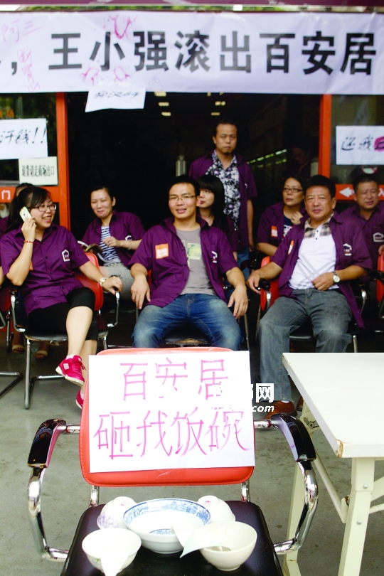 昨日下午,百安居南山店裝修設(shè)計(jì)中心約20名員工在店門口靜坐抗議。