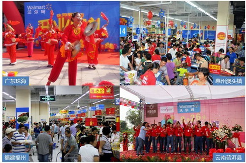 沃爾瑪在福建福州、廣東珠海、云南普洱縣、及惠州澳頭鎮(zhèn)的四家全新購(gòu)物廣場(chǎng)開業(yè)盛況