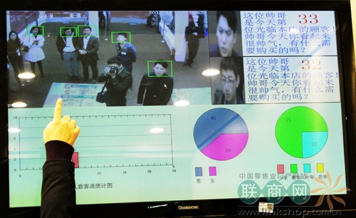 人臉識別客流統(tǒng)計系統(tǒng),能實時統(tǒng)計客流人數,包括男女、大致年齡等信息,有“您是第幾位帥哥美女”等歡迎語提示;