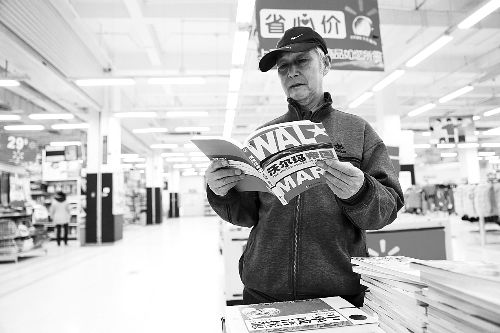 。沃爾瑪負(fù)一層空空蕩蕩,一名老人在圖書區(qū)閱讀《沃爾瑪?shù)蹏罚?br />