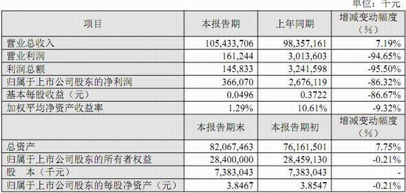 綜上,2013年公司實(shí)現(xiàn)營業(yè)收入1,054.34億元,較上年同比增加7.19%,利潤總額、歸屬于上市公司股東凈利潤分別較上年同比下降95.50%、86.32%。