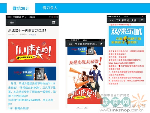 樂城將其微信營銷策略整合為36計。《第三只眼看零售》看了樂城微信36計嘆為觀止。作為一位新聞傳播者,我總結樂城的微信營銷以下特色: