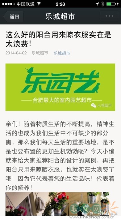 曾幾何時,有個帖子“這么好的陽臺用來晾衣服實在太浪費”,講的是如何利用植物布置溫馨陽臺。結果樂城借鑒其靈感,在最后,植入了樂城旗下小業(yè)態(tài),樂園藝的廣告。名為給你布置陽臺,實為向你推薦樂園藝。聲東擊西啊。