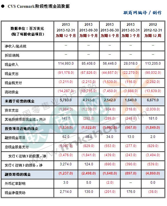 附CVS Caremark 2013財年重要數(shù)據(jù):