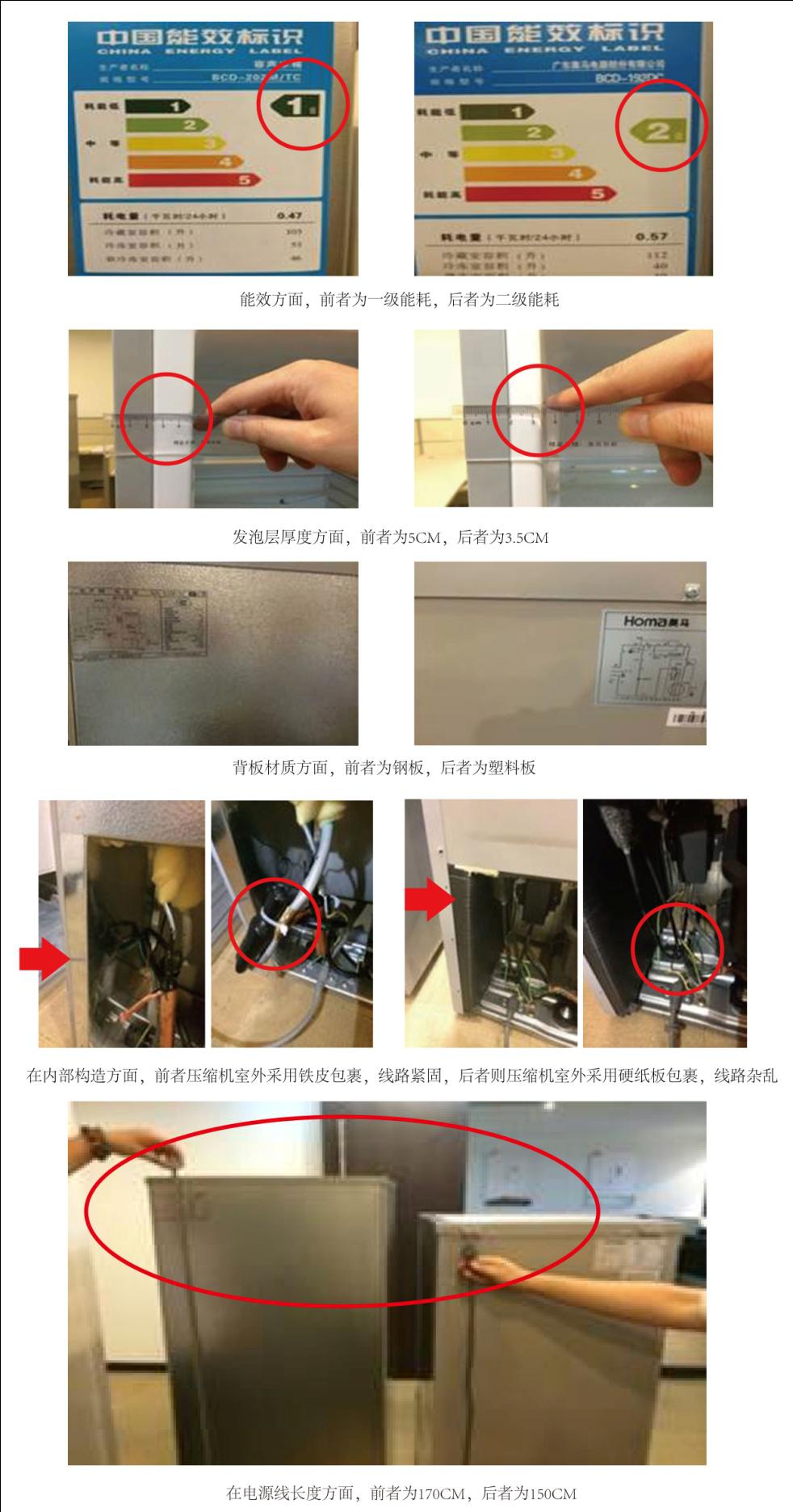 前者為國(guó)美所售一線品牌冰箱,后者為某知名電商平臺(tái)所售三線品牌冰箱。