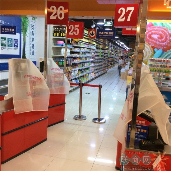 。▓D:在收銀處的兩邊都有無購物通道,如果沒有采購商品,或有急事想離開商場的可以從這里通過。業(yè)內許多超市都還無法做到這點。罩著的四臺POS機是快速結算機,只有人流高峰期時才會啟動,能有效減少排隊的情況。)