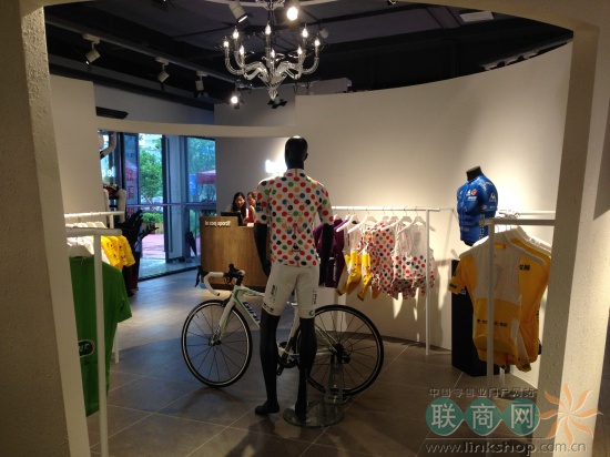 。ㄩT店里配合產(chǎn)品陳列的自行車均由捷安特提供,其中還包括環(huán)法賽中的冠軍戰(zhàn)車。)