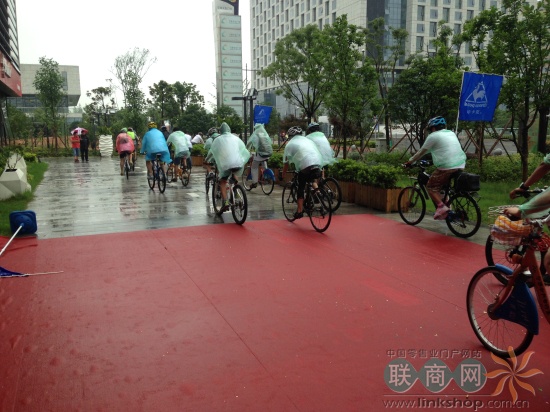 樂卡克新店開業(yè)儀式頗具創(chuàng)意,除了常規(guī)的開業(yè)典禮外,還組織了一場大規(guī)模的騎行,騎行者由樂卡克粉絲和騎行愛好者組成。雖然天公不作美,開業(yè)的時候下著雨,但是這絲毫不影響騎行者的熱情,各個穿著雨披騎行。