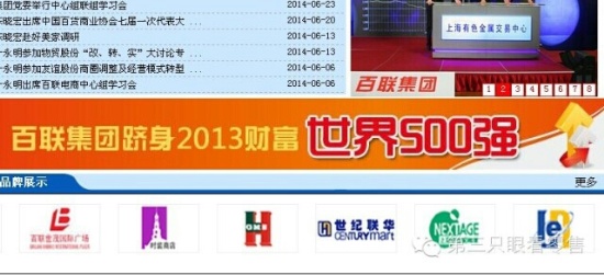 躋身世界500強的廣告依然橫掛在百聯(lián)集團(tuán)網(wǎng)站首頁,但已經(jīng)是老黃歷了。